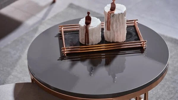 Imbonerahamwe ya Havana: Imeza ntoya ya kawa ikoreshwa kuruhande rwa sofa.
