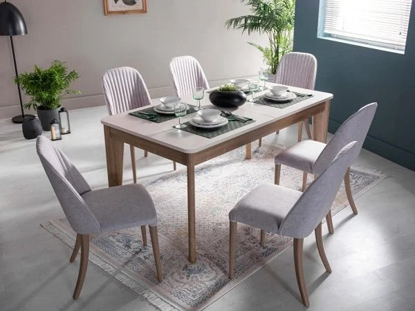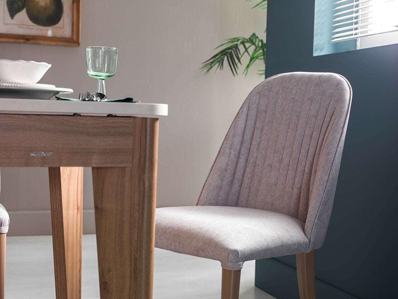 Igishushanyo: Numurongo wacyo ugezweho hamwe nubwiza bwubwiza, intebe yuzuza imitako yose yo kuriramo. Iraboneka mubicucu bihuye na opaque yera na oak tone ya Mavenna.