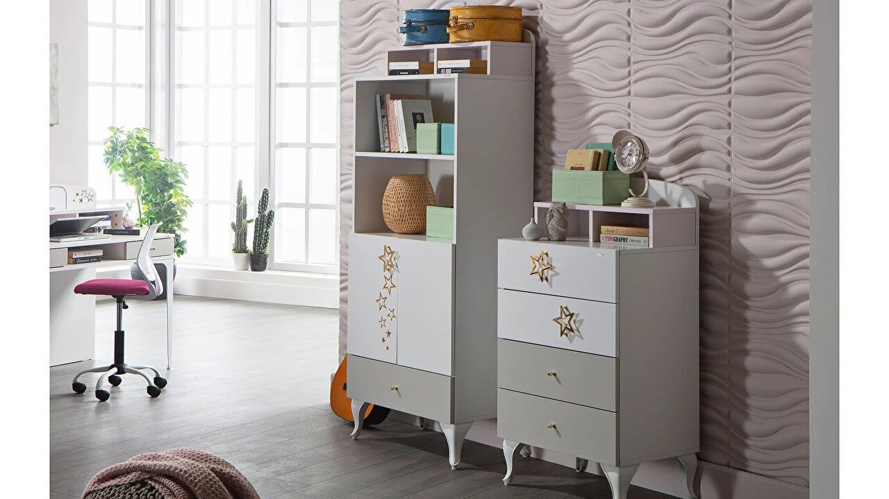 Ikariso y'ibitabo ya Bellona Sandy iri mu cyumba cya Sandy Teen Icyumba kandi ni igikoresho gikora ibikoresho byo mu rwego rwo gukora gahunda mu byumba by'ingimbi.
