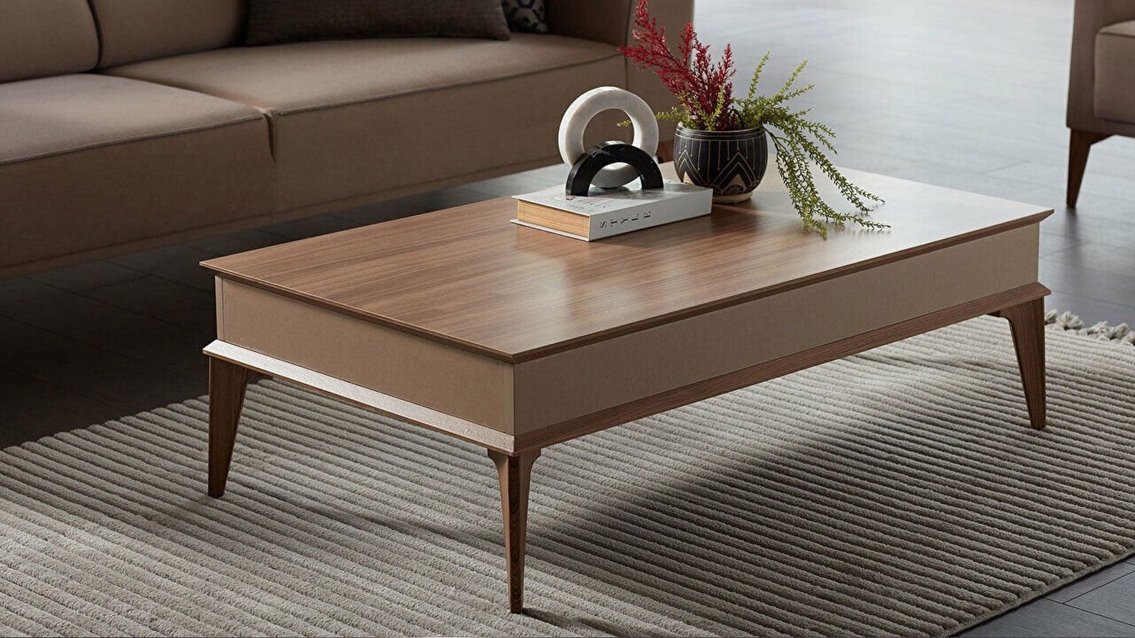 Igishushanyo: Igabana ibintu byiza hamwe nameza yikawa hamwe nigishushanyo mbonera.
