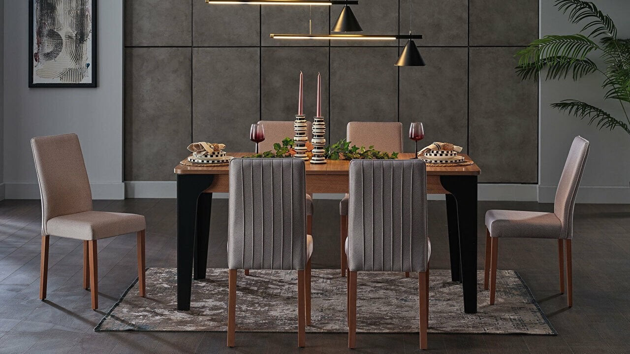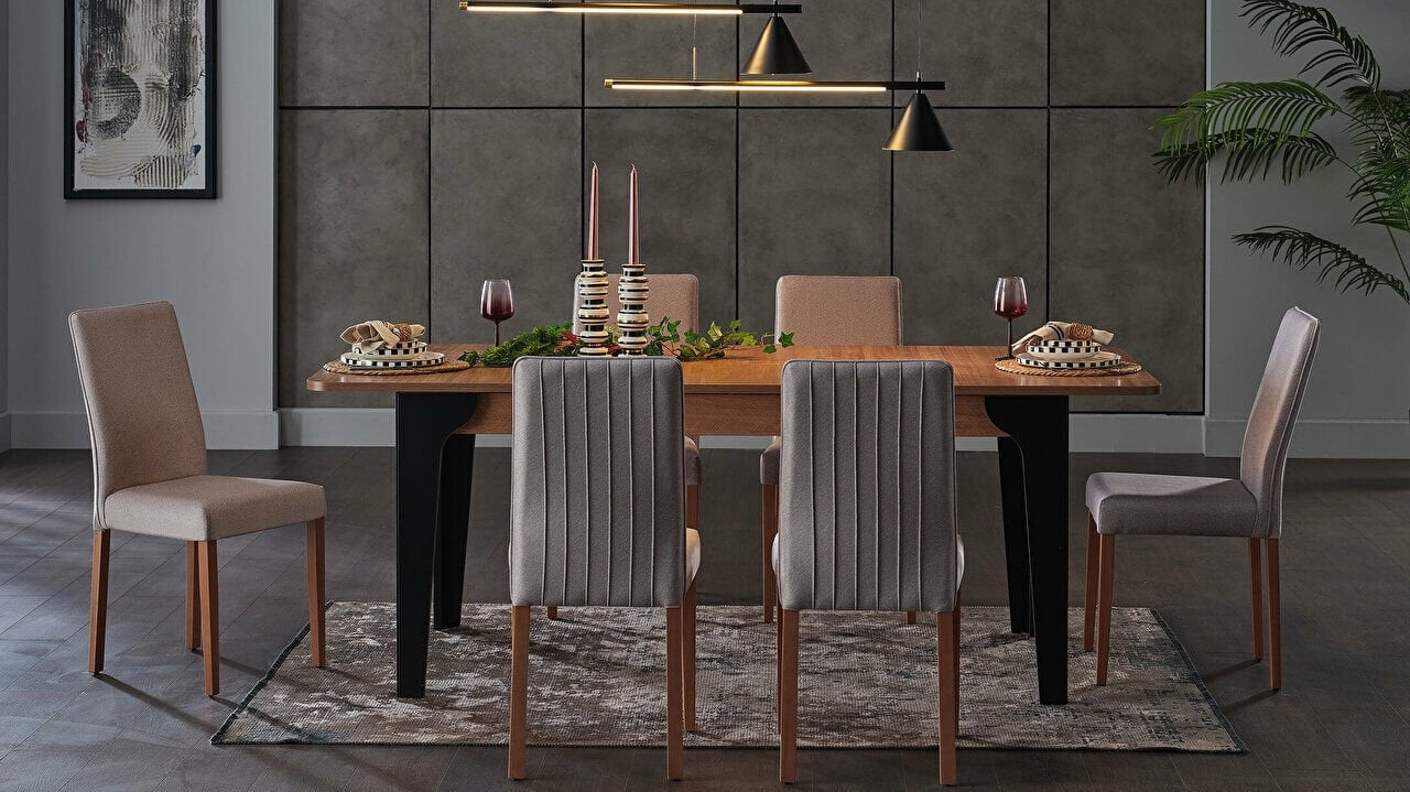 Yaguwe: Imeza ifite ubugari bwa cm 204 iyo ifunguye, igufasha kwakira neza abashyitsi benshi.